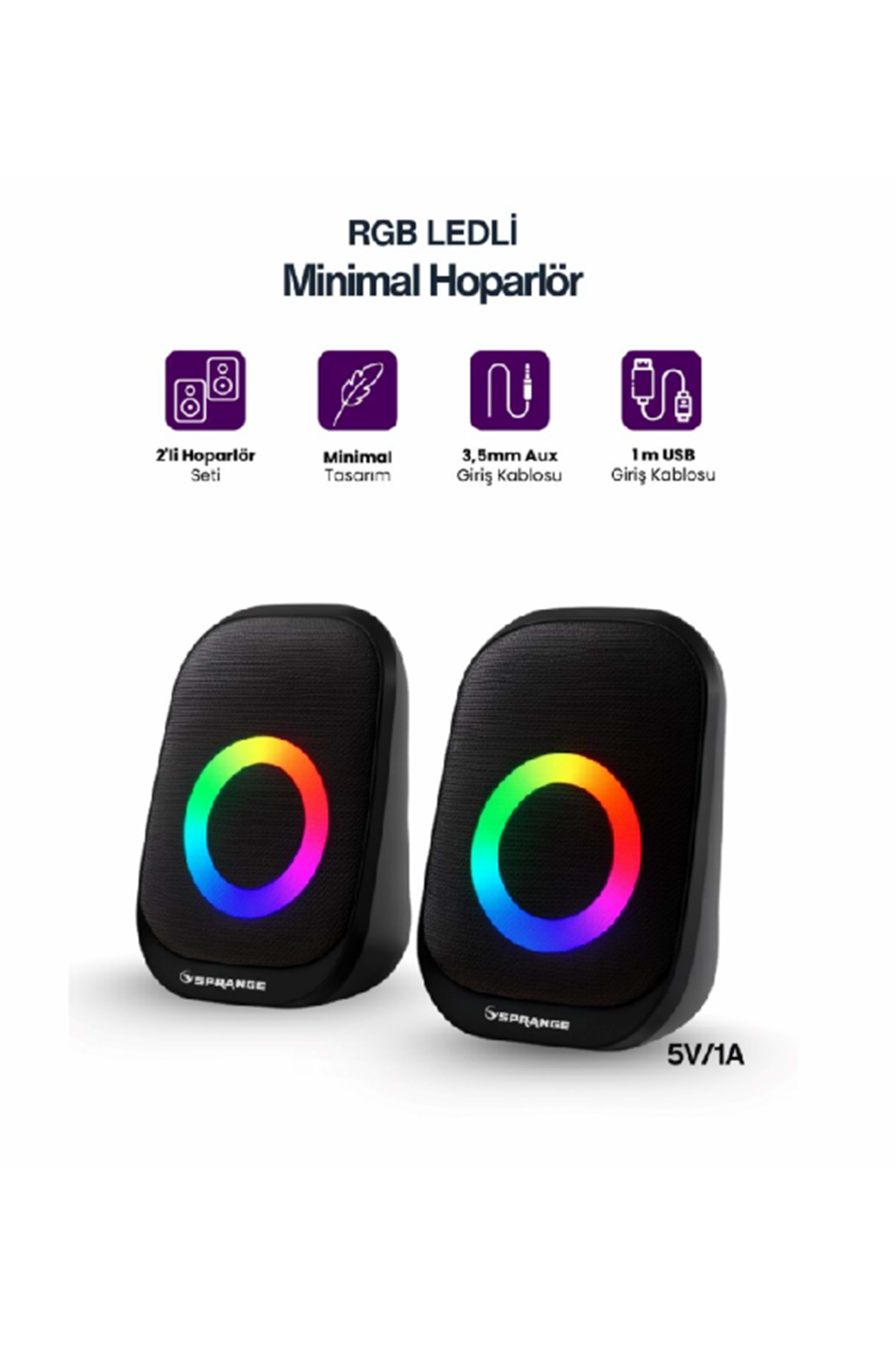 Sprange SR-PN786 3W*2 USB 2.0 + 3.5mm 5V Hoparlör Siyah SRPN786