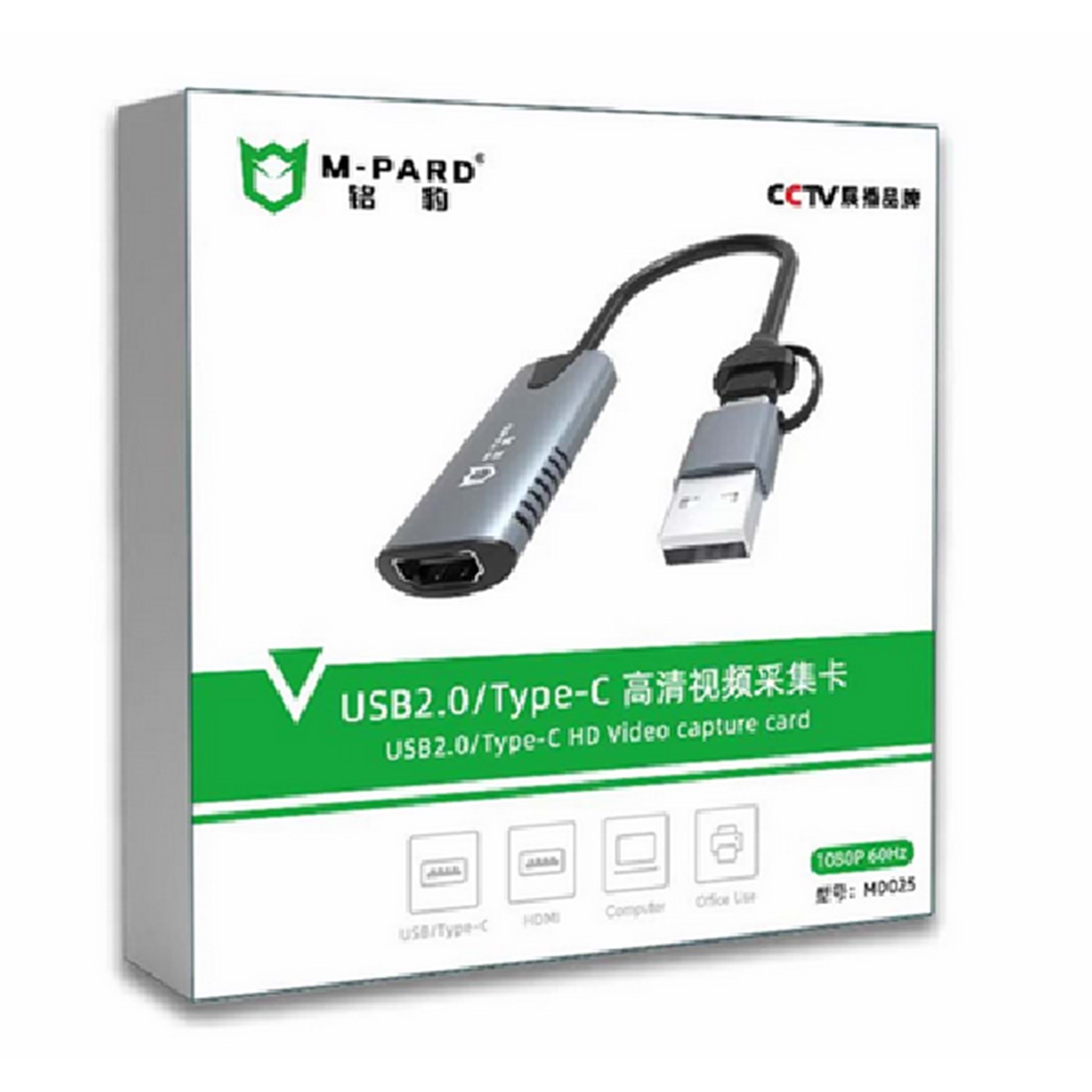 M-PARD MD025 USB2.0/TYPE-C TO HDMIM-PARD MD025 USB2.0/TYPE-C TO HDMI VIDEO CAPTURE- Product Name: USB2.0/TYPE-C TO HDMI VIDEO CAPTURE- Interface Type: TYPE-C/USB2.0/HDMI Female- Scope Of Use: Computer, Tablet, Camera, Video Camera,etc- Compatible Sy
