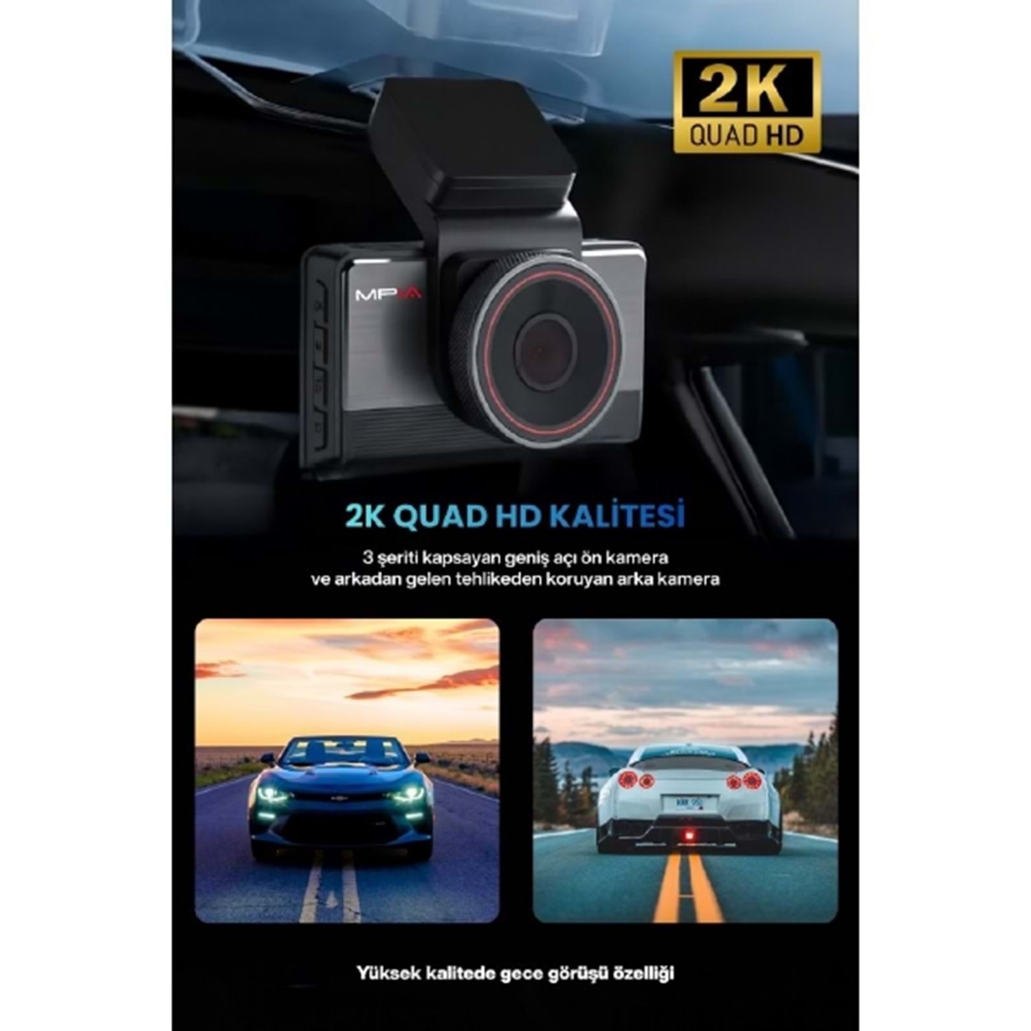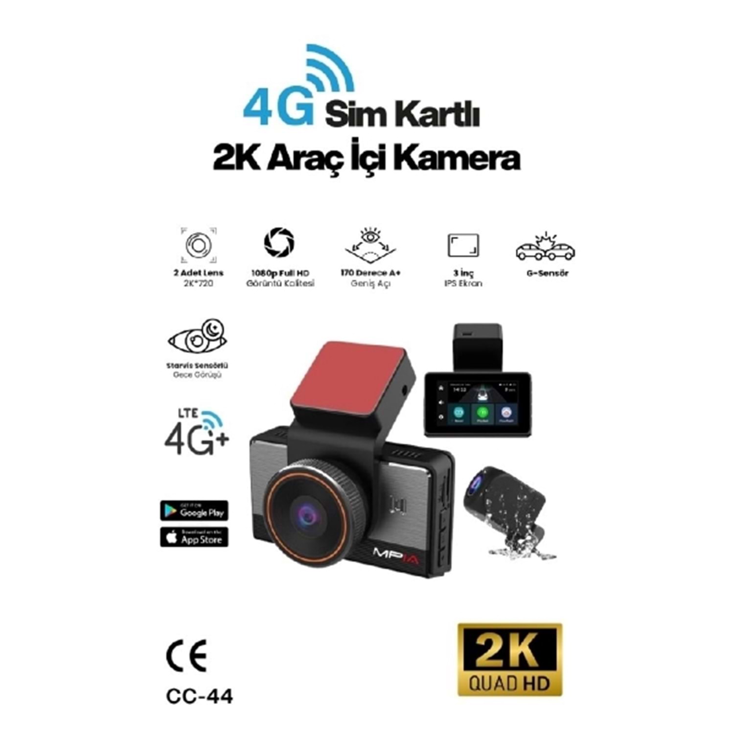 MPIA CC-44 3.0" IPS Ekran 2K QUAD HD Ön Kamera 4.5G Araç Kamerası