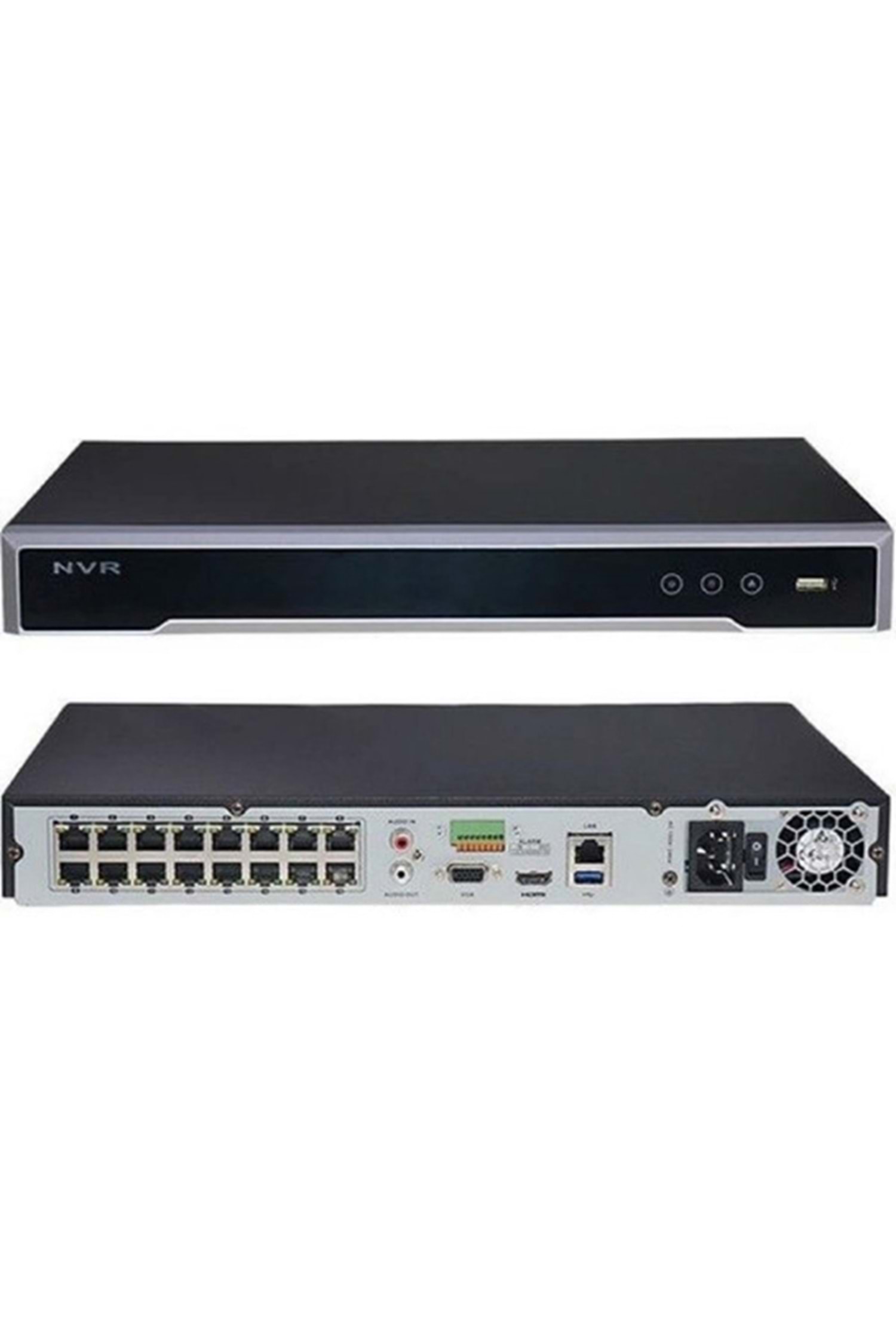 8 Kanal NVR (8 Port POE) H.265/H.264/H.264+/MPEG4, 8 Port POE Destegi (120W), 80Mbps kayit, 160Mbps çikis bant genisligi, çift yönlü ses destegi, 2 SATA (2x6TB), 1xHDMI (4K, 1080p), 1xVGA (1920x1080), 1xSes Çikisi, 1xRJ45, 1xUSB 2.0, 1xUSB 3.0, Alarm girisi/çikisi: 4/1, 8MP Çözünürlük Destegi