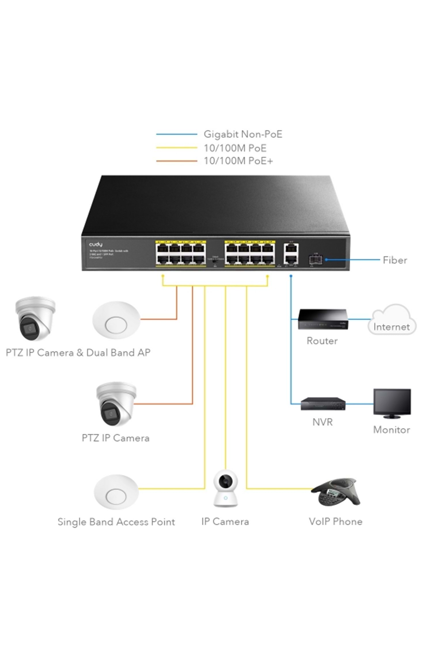 CUDY FS1018PS1 16 Port 10/100 Yönetilemez +2 Port Gb. 1 SFP (1GB) Rack mount (16 Port Poe+) 200W Switch