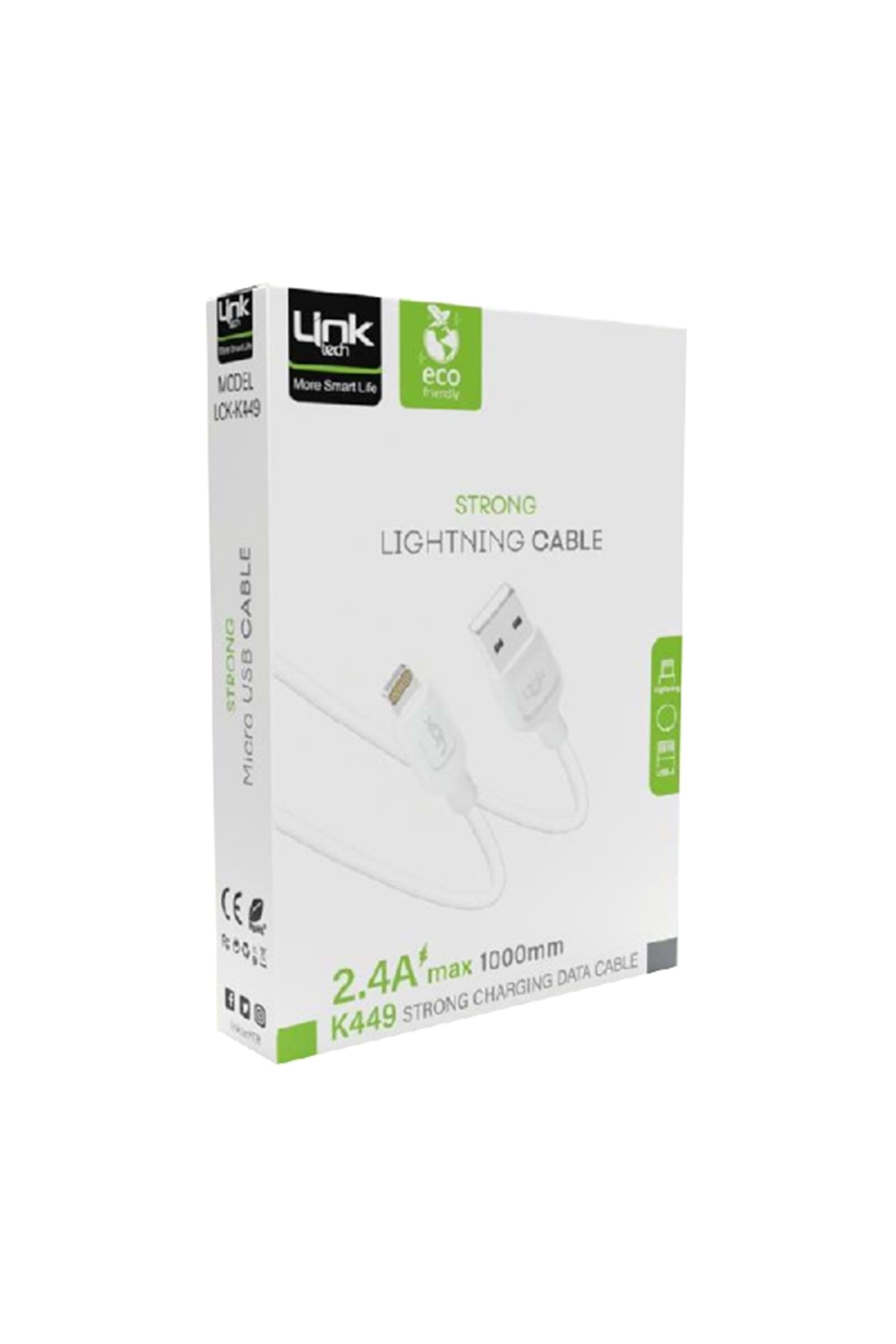 Linktech K449 Strong Lightning - USB Data/Şarj Kablosu 1mt 2.4A Beyaz